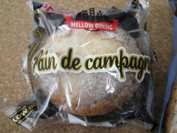 フランスパンの一種。フランス語で「田舎パン」という意味。丸く成形される。粉(ライ麦や低精製小麦粉)・水・塩だけで作られる。丸型の物をブールと呼ぶこともある。