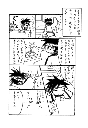 そこで、漫画を一つ思いつきまして、せっかくの祝二桁を祝ってやろうと思ったので御座います。