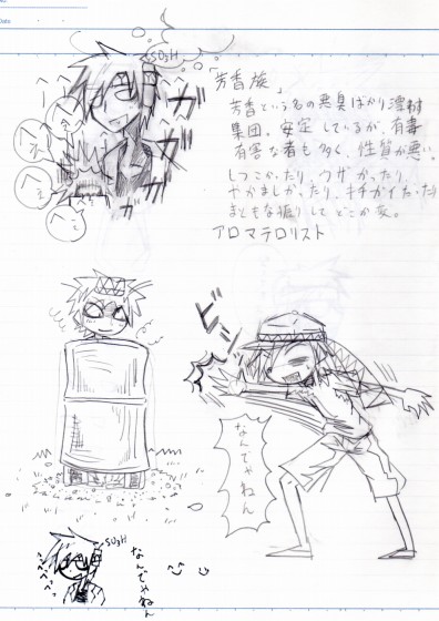 落書きは紙が基本だが、ノートをいつまでも持っとくのもいろいろ邪魔なんで、ページ切り離してスキャンした。古いノート(10年くらい前じゃね?)だから、古い落書きばっかりだ。あげれそうなのがあればUPするけど、どっちかってーと、キャラやネタの案が中心であんまりUPするものなさそうだ。